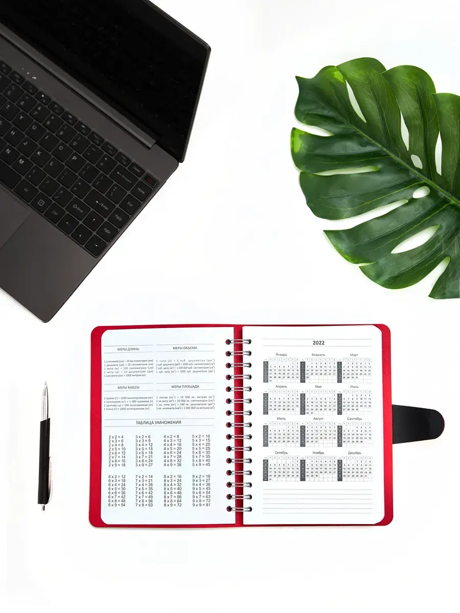 Универсальный недатированный ежедневник на пружине. Обложка выполнена из качественной двусторонней экокожи. Внутренний блок изготовлен из белой бумага 80 г/м (офсет). Страницы со справочным материалом содержат информацию: календарь 2020-2023гг; часовые пояса; таблица единиц изменения; таблица размеров одежды и обуви; таблица калорийности продуктов.Упаковка – коробка из крафтового картона. Широкая гамма цветовых решений позволит Вам подобрать ежедневник под любые задачи. Упаковочная коробочка делает наш продукт уже готовым подарком, который обязательно Вас порадует.На обложке можно наносить логотип способом лазерной гравировки, шелкографией, тиснением фольгой, блинтовым тиснением.