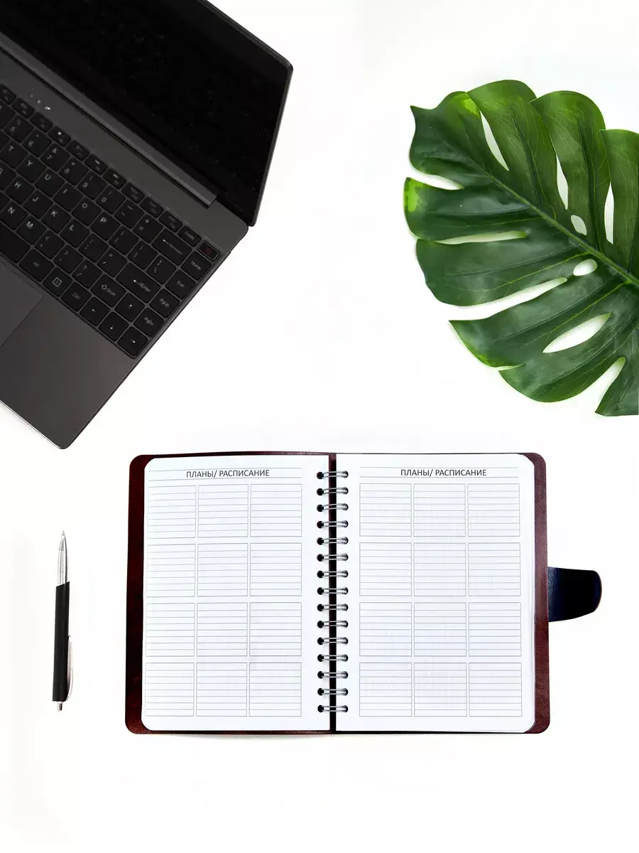 Универсальный недатированный ежедневник на пружине. Обложка выполнена из качественной двусторонней экокожи. Внутренний блок изготовлен из белой бумага 80 г/м (офсет). Страницы со справочным материалом содержат информацию: календарь 2020-2023гг; часовые пояса; таблица единиц изменения; таблица размеров одежды и обуви; таблица калорийности продуктов.Упаковка – коробка из крафтового картона. Широкая гамма цветовых решений позволит Вам подобрать ежедневник под любые задачи. Упаковочная коробочка делает наш продукт уже готовым подарком, который обязательно Вас порадует.На обложке можно наносить логотип способом лазерной гравировки, шелкографией, тиснением фольгой, блинтовым тиснением.